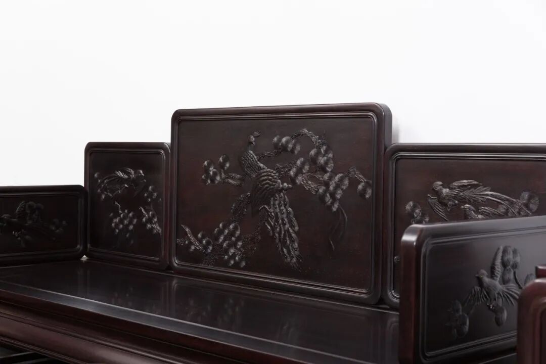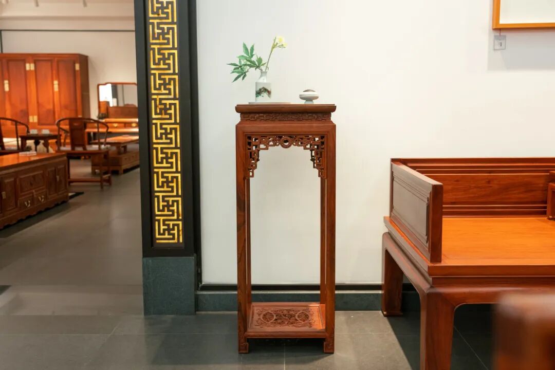 除了以上这些术语,红木家具的世界里还有许多有趣的名词。比如“三屏风”,指的是由三扇屏风组成的座屏风;“扇面式凳”,则是凳面作扇面形的杌凳;“上箱下柜”,则是立柜上承有向上掀盖的箱子,而不是两开门的顶柜。这些名词不仅形象生动,还充满了文化的韵味。