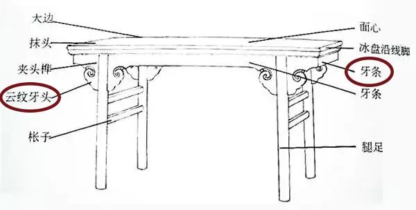 牙子,位于家具立木与横木交接处,是家具结构中必不可少的装饰部件,具有支撑和装饰两个功能。牙子大致可分为:角牙、挂牙、站牙、牙头及各种牙板等。
