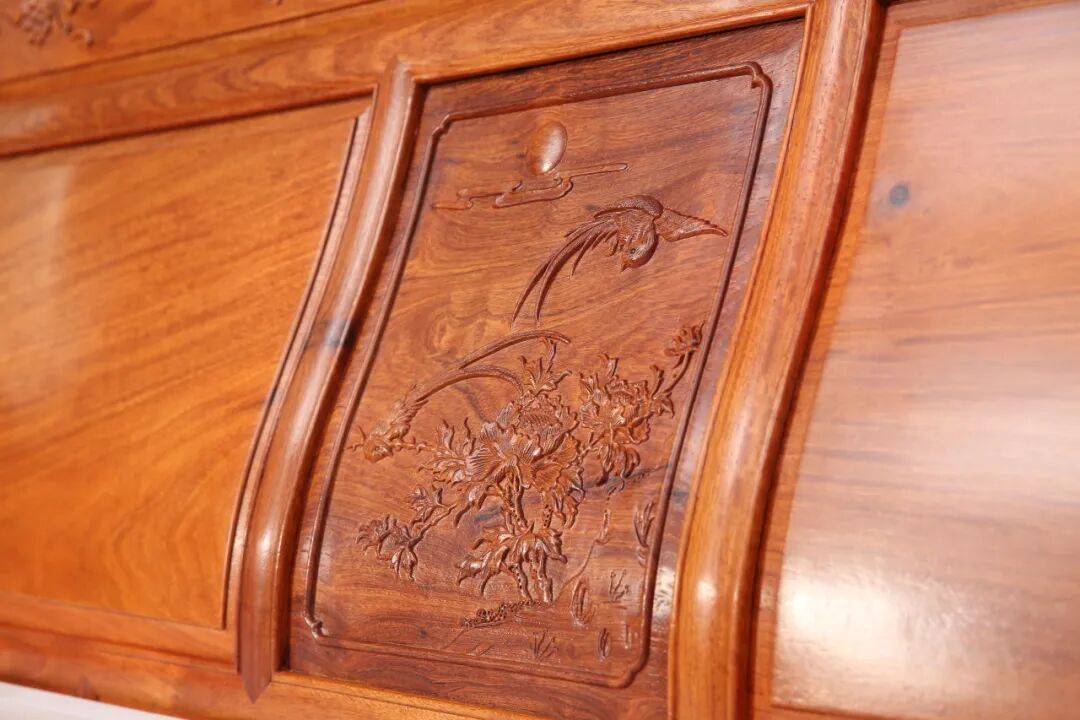 名广作的红木床,选料上乘,采用优质红木精心打造。这些红木材质不仅质地坚硬、纹理美观,而且具有极高的收藏价值。在制作工艺上,名广作注重细节和品质,每一道工序都经过严格把控和精心打磨,确保每一件产品都达到最高标准。